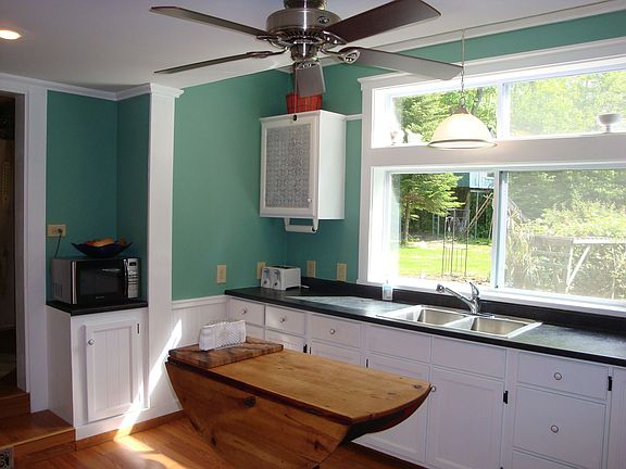 COUNTRY LIVING AT ITS BEST! This 10 room Modern New Englander offers views of Ragged Mountain with a blend of unique features including sinks in every bedroom, stained glass, built-ins, solid panel doors, a Franklin stove turned into a gas fireplace all well balanced with a modern kitchen and baths. Located on a country road close to Route 4 & Route 104 on 2 beautifully landscaped acres there are vegetable gardens, perennials, elderberry & raspberry bushes, grape vines & quince, apple and pear trees. If you like to can your bounty there's a summer kitchen and pantry! The forsythias are in bloom and soon will be the Rhododendrons, lilacs and lillies. A comfortable primary residence or a great vacation home.