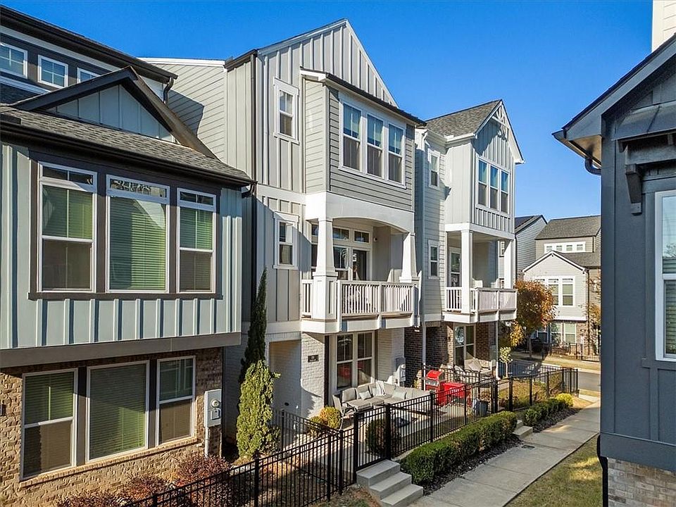Welcome to the former model home at Hargrove in Decatur! This stunning residence is packed with upgrades and thoughtful design touches. From the moment you arrive, you’ll be captivated by the beautifully fenced patio that sets the stage for what’s to come. Step inside to a spacious foyer on the first level, featuring hardwood floors and elegant double doors leading to an oversized guest bedroom. This inviting space boasts a wood accent wall, abundant natural light, and an ensuite bath. Head up to the main level—an entertainer's dream! The chef’s kitchen is a showstopper with quartz countertops, a massive waterfall island, stainless steel appliances, a double oven, floor-to-ceiling cabinetry with glass accents, and a pantry with custom shelving. The dining room features a built-in storage bench, space for a large table, and a charming office nook. Adjacent, the expansive living room opens to a private balcony, perfect for relaxing or entertaining. On the third floor, you’ll find three well-appointed bedrooms and two baths, as well as a convenient laundry area. One of the guest bedrooms includes the cutest custom-built bunk beds. The primary suite is truly luxurious, with a wood-inlaid tray ceiling, a striking stone accent wall, and a walk-in closet complete with custom shelving. The spa-like primary bath features upgraded vanity, lighting, and tile plus the most amazing glass-enclosed shower with rain head. The upgrades continue into the garage, which includes additional windows, a mini-split A/C unit, and epoxy-coated floors—ideal for a home gym or DIY workspace. Throughout the home, you’ll enjoy a built-in speaker system for seamless audio in every room. Situated in the highly sought-after City of Decatur School District, this home offers unparalleled convenience. It’s within walking distance of Decatur Square, Legacy Park, restaurants, shops, and more. This home combines luxury and location in a way that’s truly unmatched—don’t miss your chance to make it yours!