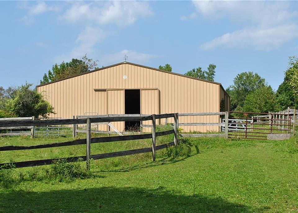 Spectacular equine property, located on quit country road with easy commute. This property includes 7 existing box stalls with room for 3-4 more. Sand floor 60 x 100 indoor lighted riding arena designed for cross style training. high producing drilled well and public water available. several paddocks and pastures. Established home site ideally situated overlooking property. If your looking for an existing well build horse barn with home site potential, this is a must see.
