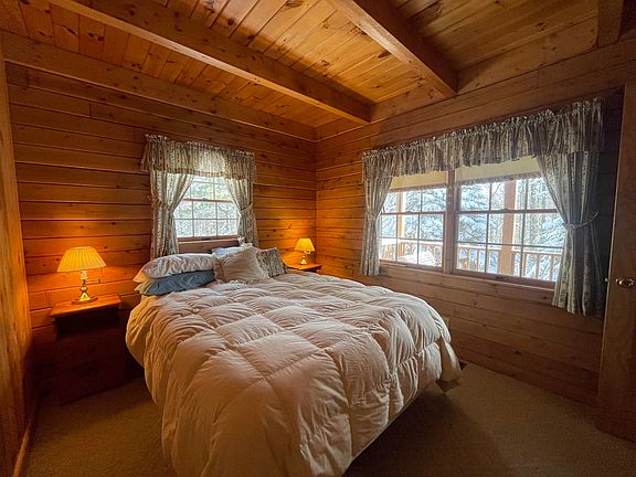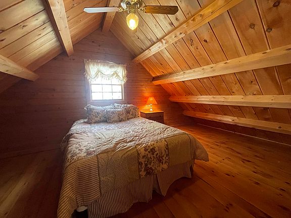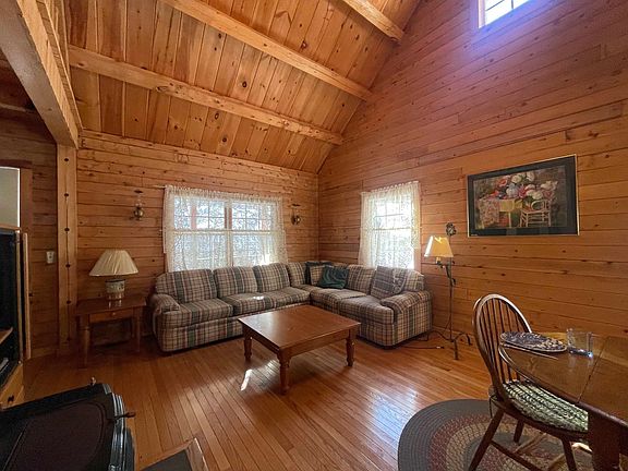 Discover tranquility in Stratton, Vermont with this inviting 1240 square foot log cabin. Tucked away on a lone-acre lot, this charming home boasts 4 bedrooms and 1 bath, offering ample space for family and friends to unwind. Step inside to find a cozy living area with a wood burning stove, perfect for chilly evenings, while the simple kitchen and dining area provide a wonderful space for shared meals and memorable gatherings. Outside, the covered porch beckons for relaxation amidst the beauty of nature. With its proximity to Stratton Mountain Resort, this cabin is an ideal home base for outdoor enthusiasts, offering easy access to skiing, snowboarding, hiking, and more.