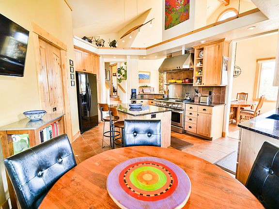 This gorgeous luxury energy efficient/solar home brings together all of the best elements of mountain living. Perfectly situated on the ridge to maximize privacy, sun & the stunning panoramic mountain views. The gourmet kitchen was designed for cooking & entertaining, w/ a 6-burner range, island & large pantry. 3 large guest bedrooms in addition to the lovely master suite plus an office/den, 2nd living area, multiple outdoor spaces, fenced yard, spacious mud room, 3 car garage & tons of storage!
