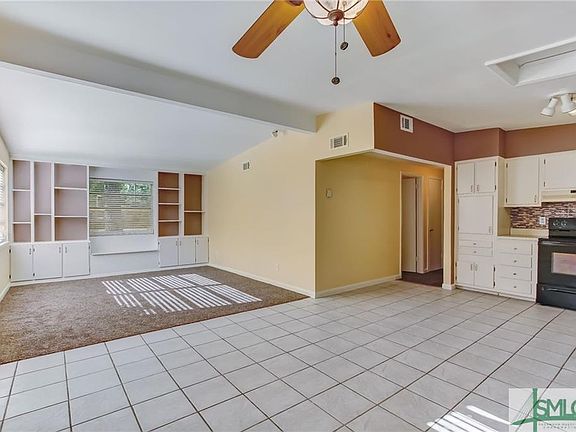 This classic Windsor Forest home boasts cool Mid-Century Modern vibes with its asymmetrical details, sleek lines, and metal accents. The interior features freshly painted walls and new carpet throughout. Entertain with ease in the open concept floor plan including the living room with built-ins, fully equipped kitchen, and dining area. Relax the day away in the master retreat featuring a private en-suite bathroom. There's even a flex room off the kitchen, perfect for a home office/game room. Out back you'll find even more to love with the massive corner lot - enjoy the fully fenced yard, rear patio, and off-street parking! Great opportunity to add your personal touches to make this your dream home or an ideal investment! All of this conveniently located in Southside Savannah close to shops, restaurants, and The Truman Parkway.