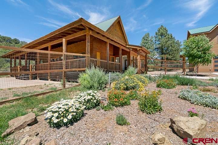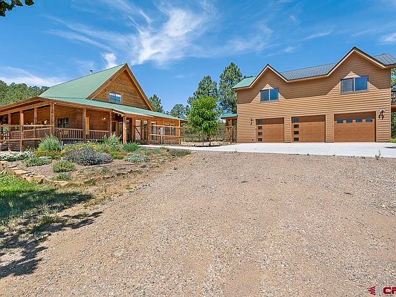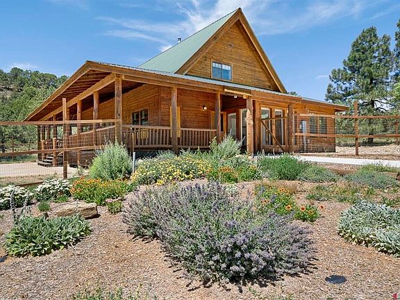 Amazing 42 acre ranch located just outside of Bayfield Private location less than 5 minutes from HWY 160. This home NOW BOASTS a turnkey short term rental with many bookings after being listed for just 14 days and is a completely furnished home with new beds, leather high end furniture, hot tub, and smart TVs. We also added a fully renovated new open plan kitchen with all new appliances, two ovens, wine fridge and bar area. A brand new main bath is also a huge addition. The 2 upstairs bedrooms both have ensuite baths. This timber frame home with a covered wrap around porch is perfect for enjoying Bayfield's amazing summer days and spending cozy nights on the deck bed! Soaring vaulted living room is dominated by the amazing stone fireplace built with stone from the property. Your private oasis has a beautiful mix of pinion, cedar and ponderosa pines, picturesque ponds fed by your 1/4 share of Thompson-Epperson Ditch rights, and lush fenced and irrigated pasture. Don't forget to pick your own fruit- pears, apples, peaches, plums apricots and more from the mature orchard on the property. The legal, permitted 1 Bedroom ADU that sits above the oversized 3 car detached garage is perfect for guests or a 2nd short term rental. A new, custom full log barn is great for hay storage or for your toys and has water and power. The historic "Pond Cabin" is an original ranch cabin from the 1930's nestled in tall pines next to the irrigation creek and pond. It has electricity and would make a great office or playhouse. Bordered on the west by a large, conservation easement protected ranch and the property makes a corner with BLM land at the northwest corner. Deer, elk, foxes, turkeys and more are your neighbors here! Where else can you get 42 private acres, excellent cell and internet service, great well, water rights and still be only a few minutes from town? The adjacent 38 acre parcel to the south is listed separately and both could be sold together for a negotiated combined price. Owner is Broker.