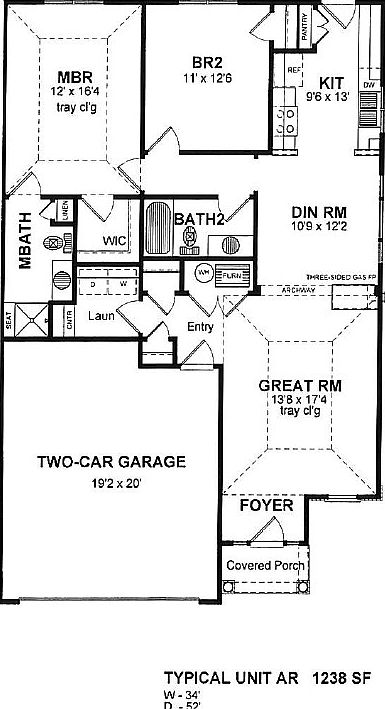 - Total interior livable area: 1,238 sqft