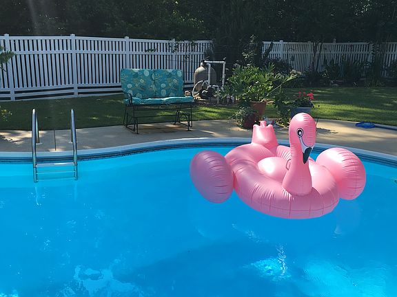This house has it all. A pool, with a new liner, 12 ft ceilings in kitchen, family room and dining room. Security system, surround sound inside and outside on the deck , fireplace with gas logs and a remote, A nice size kitchen with new stainless steel appliances including a gas stove. 9 ft ceilings in bedrooms. Bonus room upstairs. The back yard is fenced and beautifully landscaped with a sprinkler system