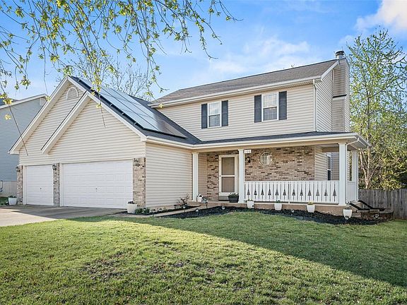 Welcome home to this well maintained 2 story home located in the Wentzville School District. The main level offers a bright open living room with gas fireplace that flows into the kitchen with granite counters and SS appliances. Through the laundry/mud room you will find the oversized 3 car garage with additional storage/workspace. The primary bedroom/bathroom upstairs includes a large custom wardrobe. Two additional bedrooms and full bath finish up the upper level. The partially finished basement offers another full bathroom and family room that could also be the perfect playroom along with a nice sized storage area. Enjoy playing entertaining and gardening in the large fenced in backyard with a greenhouse, raised garden beds and a massive deck that extends the length of the house. The home comes with solar panels and seller offering a 1 yr AHS Shield Essential Home Warranty.  This home has so much to offer all within walking distance to downtown Wentzville and Heritage Elementary. Additional Rooms: Mud Room