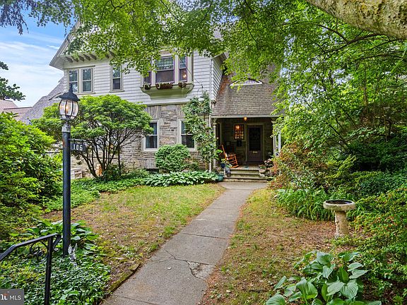 Step back in time to a simpler life! Before cell phones, before computers, before television, before radios and even before electricity, this lovely Queen Anne Victorian Twin with emerging Colonial Revival influences began its life on Woodland Road! For those that know & live in this little "pocket" community, it's a wonderful area of less than 1 square mile. For those that come to discover Wyncote, they love it's old-world charm. As the railroad barons began expanding their routes, the owners of the North Penn Railroad, at the urging of local residents & business owners, established a flag stop in 1859 at what is now the Jenkintown-Wyncote SEPTA train station. Usage of this stop became so frequent, that in 1890 (in conjunction with the building of the Reading Terminal Market), a more formal station was constructed to service this area. Now that frequent service provided easy access to the masses in downtown Philadelphia, real estate developers and wealthy citizens began purchasing large tracts of land. Woodland Road is one of the earliest developments that created a unique Victorian aesthetic in the late 1800’s. Many of these original properties were constructed to provide housing to city dwellers that would take the train out for rest & relaxation in the country as boarding houses (think of an AirB&B of the time!) or summer rentals. In 1885, A real estate developer named Willis P. Hazard purchased 19 acres and immediately set out to lay the road and sell lots off to other developers. The first 4 housing units on the street, closest to the train station, were two sets of Twins. All four of these units were owned by a Dr. J. Elwood Peters. Dr. Peters was a practicing physician in Jenkintown and purchased 6 lots on Woodland Road. He likely kept these as rental units for those summer travelers. Perfectly sited high on the hill, and just 2 blocks from the SEPTA station (with the best scheduled service to Temple University, downtown Philadelphia, the Drexel University and University of Pennsylvania campuses and even the airport), it's located on a lightly traveled street with great long-distance, Southerly views beyond the fenced backyard. A welcoming front porch is the perfect place to relax during the evenings with a glass of wine & watch the sunsets. Step into the foyer, and all the rich, original details begin to unfold, from the Dutch door with intricate carvings to the hand-carved balusters. The large foyer has a coat rack and a powder room tucked under the stairs. Surprisingly open for the era, the living & dining rooms are one huge 31' room. The living room has a brick, wood-burning fireplace, while the dining room has a large pantry/china closet and a lovely bay window overlooking the rear yard. The efficient eat-in kitchen is certainly eclectic, yet has all the necessary S/S appliances including a 36" 5-burner gas stove with two ovens and a French-door S/S fridge. A unique, step-down family room addition was added to the rear of the home that has a wall of windows and a vaulted ceiling. There are three large bedrooms on the 2nd floor, with the primary bedroom having 2 closets. There is a hall bathroom, and the most delightful office with an eyebrow dormer window! The hallway on both the 2nd & third floors are quite wide, and there is even a large Palladian window that floods the stairway with afternoon light. On the 3rd floor, there are 2 more large bedrooms, the 2nd full bathroom and the laundry. Rare for this vintage of homes, it has central A/C! Step outside, and you enter your own private oasis, affording complete privacy due to the elevated nature of the lot, privet hedges & fencing. A large deck wraps around the side & back of the home. It's a beautifully preserved property, within walking distance to everything that Wyncote has to offer.