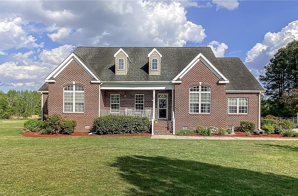 Gorgeous custom-built brick ranch offering 4 bedrooms, 3 baths on 2.74 beautifully landscaped acres. Located in Tyner, Chowan County,NC. Foyer entrancewith formal dining and office. Open floor plan with large living room and electric fireplace. Chef’s kitchen featuring stainless steel appliances and breakfast bar. Split bedroom layout: Primary suite with tiled shower, garden tub, and walk-in closet; second ensuite bedroom plus two additional bedrooms with shared bath. Real hardwood floors, tiled baths, carpeted bedrooms, central vacum.All this on one level! Front and back porches for enjoying stunning sunrises and sunsets. No flood insurance required, no HOA. Minutes to shopping and restaurants in Edenton & Easy drive to Elizabeth City, Suffolk, and the OBX. Call today for a showing!
