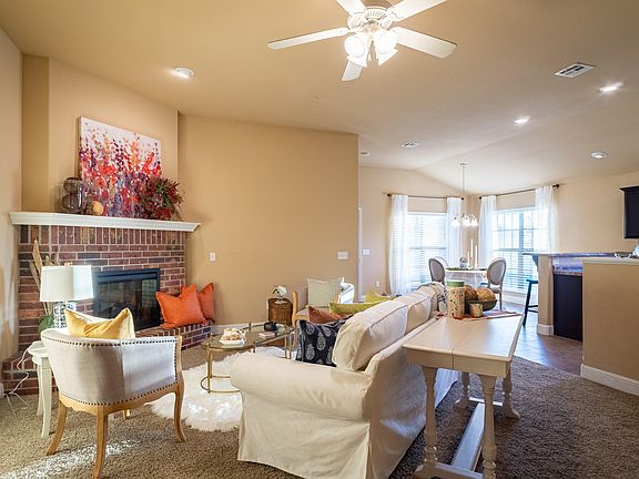 Super cute home with open floor plan and a cozy corner fireplace is located in Briarbrook golf community. Spacious owners suite with double closet and tile shower offers privacy from 3 additional bedrooms. Relax on the spacious, covered front or back patio or walk to the community park. Complete with a side entry garage and reinforced pantry for a storm shelter. This home has a structural warranty and qualifies for 100% RD loan. Wait and it will be gone!