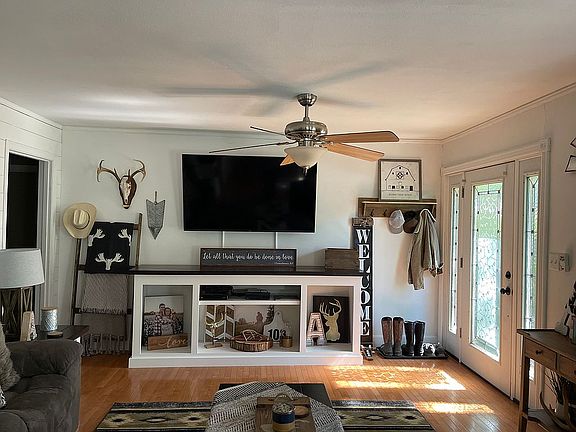 3 bedroom 1 bath Storm cellar under house with lots of storage Price $128,000 and included in price: •all kitchen appliances (stove, new microwave, refrigerator/freezer, dishwasher) •entertainment center in living room •living room end tables and coffee table •bedroom set (queen size bed and mattress, night stand, and dresser) •small desk •living room recliner and couch (with a recliner on each end) •2 rugs 8’x11’ (gray) 7’10”x10’6” (gray and white)