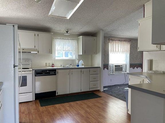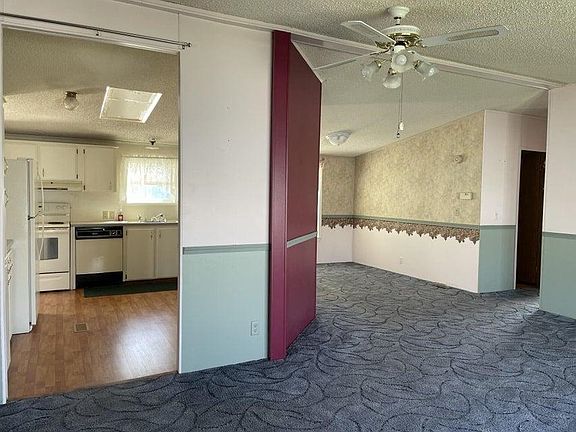 Walk into a large living Room with primary bedroom and bath on one end . Enjoy the open kitchen and dining area. On the other side a nice 2nd bathroom and the other 2 bedrooms. The Utility room with washer and dryer has storage space. Home has 1512 sq. ft of floor space. Nice lot looking at the local scenery, in the South Town Mobile Ranch. Short walk to the grocery store and close to all that Colville has to offer. This property is move in ready. Park rent of 400.00 monthly includes water, sewer and garbage pick up.
