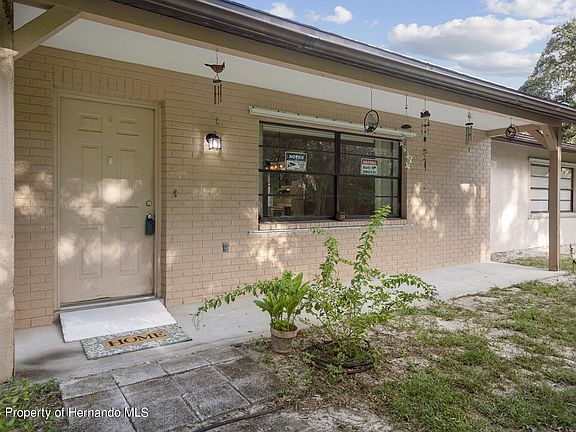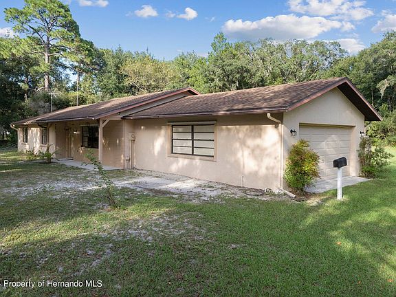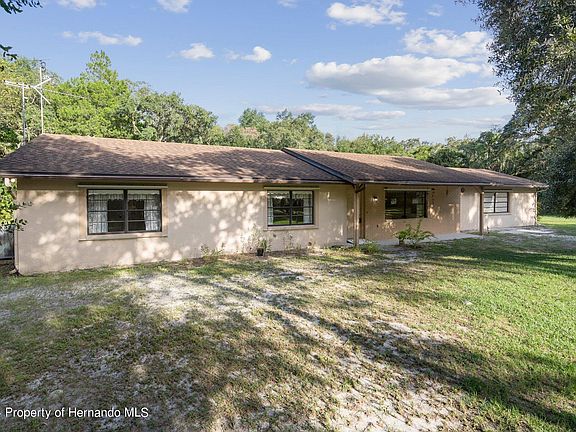 ACTIVE - UNDER CONTRACT. Taking Back up offers. HIGH AND DRY!! NOT EFFECTED BY THE HURRICANES!! Discover your PRIVATE OASIS on this 2.5-ACRES, fully FENCED property, right in the heart of Spring Hill. From the moment you arrive on the long driveway you know you are on your way to a tranquil escape. Land is large enough to expand, it's the perfect place to grow with your family while still enjoying the lush trees and privacy of your natural surroundings. This property offers it all! This 3-bedroom, 2.5-bathroom home is a generous 1,800 sq. feet with large rooms perfect for comfortable living. The cozy wood-burning FIREPLACE adds a warm touch, while THREE SLIDING GLASS DOORS let in abundant natural light—two of which lead to a ROOF-COVERED PATIO and a SCREENED ENCLOSED 10x30 INGROUND POOL, offering an ideal setting for family fun and entertainment. Enjoy the refreshing OUTDOOR SHOWER, perfect for rinsing off after a day at the beach or taking a peaceful moment to connect with NAURE. The VAST SIZE KITCHEN includes refridgerator, dishwasher, range and hood, and EXTRA FREEZER in the 10 x 6 WALK-IN PANTRY.