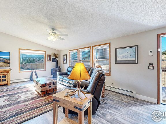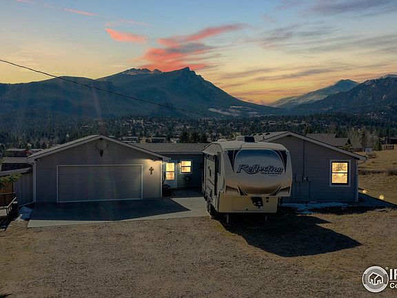 Welcome home to this adorable ranch style situated on a half acre, with fenced in back yard and sprinklers. Take in the stunning views of Twin Sisters, Longs Peak, and Meeker as you relax on the patio. The heated oversized two car garage has plenty of room for your vehicles, additional storage, and workspace. Many new upgrades have been completed including siding, exterior paint, interior paint, flooring throughout, bathroom vanities, toilets, copper plumbing, baseboards, newly insulated crawl space with vapor barrier, new mud room windows, and black stainless kitchen appliances. This bright and cozy home, with no HOA, makes for easy living in the mountains.