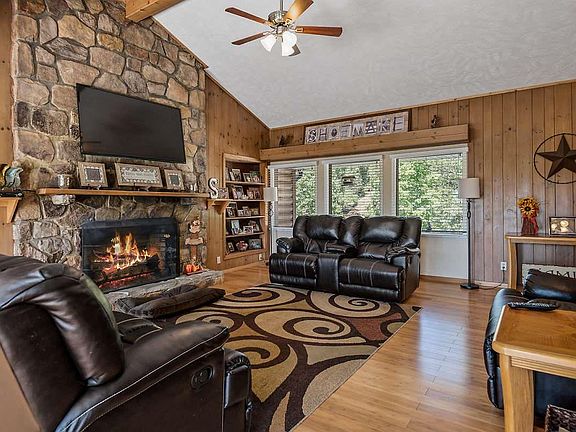 Beautiful home with even better views. Large windows through-out home to be able to enjoy the English Mtn views. Kitchen and Living Room are both very large and have plenty of room for your friends and family to gather. Living Room has a gas stone fireplace with built in book shelves on both sides and 7 large windows for views. There's an office nook off of the living room as well for your convenience. Walk into the OH MY Kitchen and the size will completely amaze you! Need a Farmer's table? Plenty of room for one! And a pantry to match to add all that extra food you need to feed a farmers table full! Flow on down the short hallway you will find a guest bedroom with an en-suite! The Master bedroom which again, is another large room with it's own private balcony! We are not done yet! Downstairs, you have 2 large bedrooms, a bath and a den that would make an awesome theatre room, a rec room, or just leave as a den. And you need Storage? This home has it! All Over! Don't let this home pass you by! This home truly is worth seeing! There is 1.71 Acres next door that could be sold also