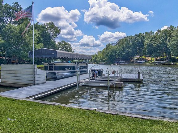 Lake Oconee Lakefront in Morgan County w/ convenient access to I-20 and only an hour from Atlanta. Ranch home on partially finished basement sits on a lightly wooded private lot with a Max Dock, boat lift and 2 jet ski lifts with 100 feet of water frontage. Big Lake Views! Hardy board steel framed home with metal roof, & Solar Tube Skylights. Hardwoods throughout main level except in large tiled sunroom with unobstructed views of the lake. Master plus 2 additional bedrooms on main floor. Downstairs has a large bedroom/bathroom/play area and lots of storage space. Bring the whole family to the Lake! Open floor plan, updated kitchen. Attached 2 car garage with additional detached 5 bay garage. Plus a huge workshop above the garage. Beautifully landscaped yard, irrigation system, covered patio on the lake side terrace level. HOA voluntary $75 per year. Great Neighborhood! Sought after school system.