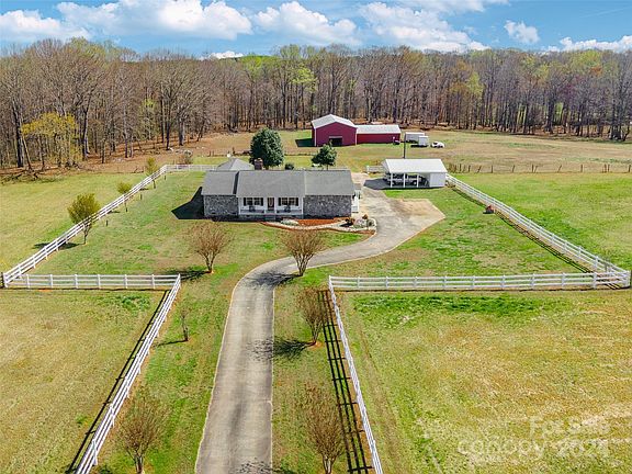 Nestled on 30 acres of breathtaking land, this property offers tranquility & charm. Relax on the covered front rocking chair porch & admire the scenic views. Inside, hardwood floors adorn the main living areas, creating an open, bright atmosphere. The great room boasts a stone fireplace & elegant chair railing that extends into the dining area. The spacious kitchen features an island/breakfast bar, double oven, tile backsplash, with bay windows in the breakfast area providing a stunning view of the land & barn. With 3 spacious bedrooms & 3 full baths, including a primary bath w/ a garden tub & separate shower, comfort is ensured. Step onto the cozy screened, tiled back porch & soak in the serenity of the expansive property. A barn with 2 horse stalls, a workshop, tractor storage, & pasture awaits, ideal for horses, cows, or goats. Additional features include a chicken coop, fenced pasture and beautiful rows of crepe myrtles along the driveway. Located in the desired Clover area!