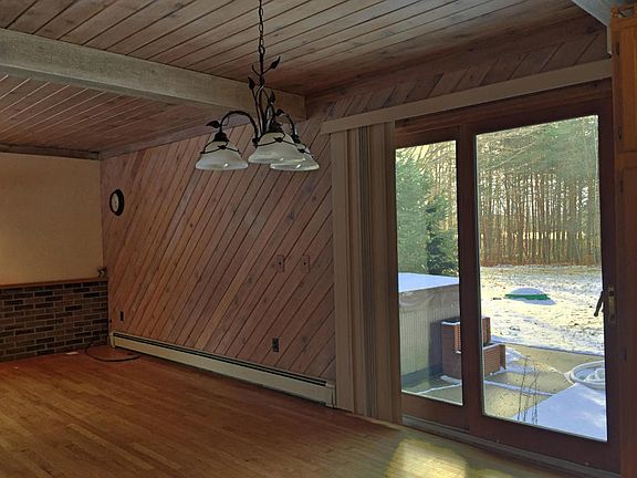 Fantastic location & setting. 3 mi. from center of town on paved wooded private setting. Colonial offers three living areas, including big living room with wood stove, giant lower-level family room with built-in entertainment center & wet bar. Brick/vinyl exterior with lots of wood inside, including hardwood floors, some ceilings, and wainscoting. Boiler installed in 2010. Potentially modest cleaning, painting provides potentially big return on equity; appraised for $169,000 in 2012. Close to Big Lake public access, snowmobile trails, ski & golf, yet only 3 mi. to center of town.