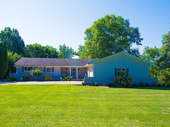 Welcome to this beautiful sprawling ranch on over an acre of land. The large front porch welcomes your guests as they enter this home and appreciate the open concept. The spacious living room hosts carpet insert with wood flooring, large windows overlooking the private back yard, and is open to the updated kitchen and breakfast nook. The kitchen has great storage, modern countertops and backsplash, with stainless steel appliances. Just around the corner is a bonus room that is being used as an additional seating room or could also be used as a formal dining room, hosting built-ins and a walk out to the expansive deck. The finished laundry and updated bath complete the main level, along with three spacious bedrooms and the master suite hosting its own updated bath. The finished walkout basement with ceramic tile provides additional entertainment space, including a media area, rec room, wet bar, and seating area, along with additional storage. Don't miss out on this great opportunity!