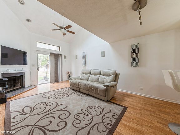 Spacious 3 beds, 2.1 baths with attached garage. Special Features include large eat in kitchen, numerous cabinets for good storage, granite counters, ceramic kitchen floor tile and wood Laminate flooring and volume ceilings. There is lovely balcony that overlooks the back yard. Two good sized bedrooms on the second floor each with their own private bath, one of the baths has recently been remodeled in 2021. The first floor bedroom can be used as office/den/guest bedroom. Skylights in the living room make this living area bright and welcoming. Located in award winning Stevenson high school and district 96 and conveniently located with-in walking distance to Jaycee Bicentennial park. Furnace replaced 2018, central air 2022, hot water heater 2020.