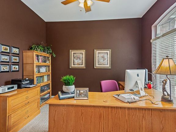 Cul de sac location! High ceilings & an abundance of large windows for plenty of natural light. Open living & dining rooms w/ butler's pantry & newer carpet. Spacious study w/French drs & ceiling fan. Large family rm w/gas fireplace & entertainment niche is open to kitchen & eat-in area. Kitchen w/Jenn-Air SS applncs, 4 burner gas range, dbl convection ovn, 42in crown molded cabinets w/under cabinet lighting, corian countertops, expansive center island w/breakfast bar, wlk-in pantry. Extensive hardwood flooring thru kitchen, eat-in area & family room. Master suite w/large bright windows, retreat area, high ceiling w/fan, large custom wlk-in closet for organization plus 5-piece bth w/oversized corner tub. Laundry/mud with utility sink & cabinets. Hall linen closet. Addl space in the unfinished full basement w/rough-in plumbing is ready for your own future design. Large low maintenance bckyrd for summertime fun to be enjoyed on covered concrete patio.