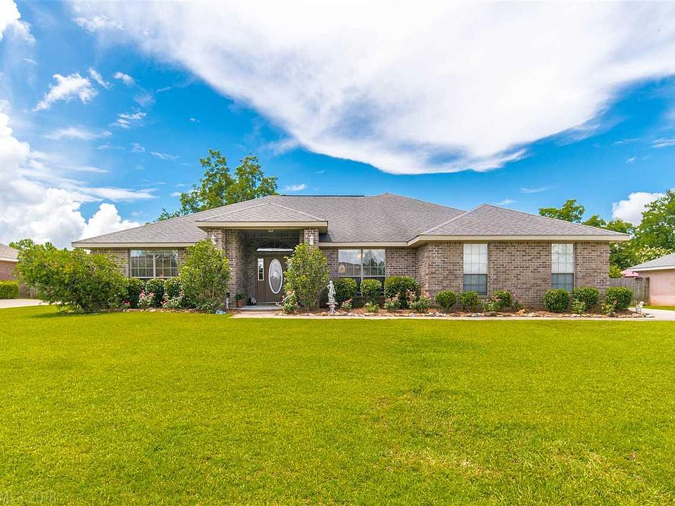 High-end home in a great neighborhood. Enjoy the durable and long-lasting quartz countertops in the roomy kitchen. The spacious open floor plan is conducive for entertaining and large family gatherings. Vaulted ceiling and a wood burning fireplace add to the ambiance of the home. Beautiful real wood floors compliment the tile floor in the kitchen. Conveniently located laundry room connects to the two car garage. Split bedroom floor plan gives you a private large master bedroom with ensuite spacious bathroom that includes multiple closets, a shower and jetted garden tub. The master suite also has an unexpected (10 X 7) private office space or sitting room. The roomy dining room allows for formal or casual entertaining. This pristine home offers three large bedrooms, two bathrooms with enclosed sun-room that has indoor-outdoor tile floors and additional office space adjacent to the master bedroom. The inviting fenced backyard offers mature shade trees, adequate space for boat storage, covered outside patio with a surprise hidden nook. The home has a brick exterior, gutters and an underground sprinkler system to make home and lawn maintenance a breeze. The entire neighborhood shows pride of ownership and curb appeal. Home is close to schools and community activities, shopping, restaurants, and some of Alabama's top-rated healing facilities. Enjoy Gulf Shores beautiful beaches only 15 minutes away.