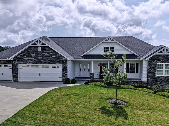 Welcome to this beautiful home nestled in the desirable Firman Ridge neighborhood of Sugarcreek. With just under 2,000 finished square feet, this thoughtfully designed residence combines comfort, function, and style. Step inside to a welcoming foyer that opens into a spacious great room with lots of natural light—perfect for relaxing or entertaining. The open-concept kitchen and dining area feature updated countertops and ample space for hosting, while the dedicated office offers direct access to the peaceful back porch. The primary suite is a true retreat with a generously sized walk-in closet and a luxurious en-suite bathroom complete with a double vanity, soaking tub, and separate shower. There is a convenient guest bath along with two additional bedrooms and a second full bath providing space for family or guests. The full, unfinished basement offers endless possibilities—whether you're dreaming of a home gym, family room, or extra bedrooms, there's room to make it your own. Additional highlights include a 3-car garage on the main level and a second 2-car garage in the lower level, providing ample storage or workshop space.