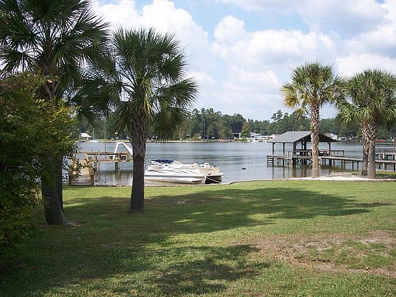 Beautiful Palm trees and a sandy beach are just a couple of the many features in this waterfront home. Great dock with water slide. This 5 Bedroom, 3 Bath homes has an large open kitchen, dining and living area. 3 Bedrooms and 2 Baths are located upstairs with a sitting area; perfect for computer gaming. The sunroom is lined with windows overlooking the lake; perfect for dining and entertaining guests. Large utility room with storage. This home is perfect for large families or for vacation rentals.