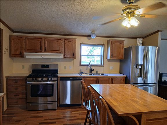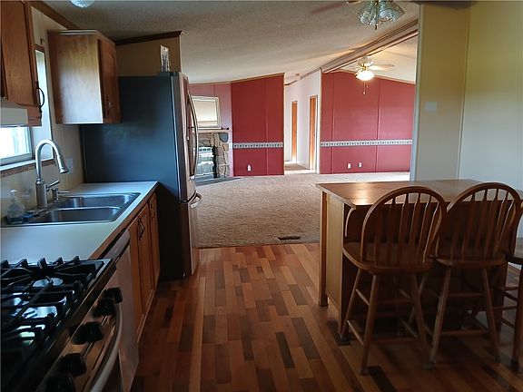 Large Manufactured home offers 4 bedrooms, 2.5 baths on a permanent foundation. RV parking Pad, fantastic sunsets from the Back deck and a small shop building with electrical and plumbing. Fenced in back yard at both front and back, Large 2 car garage and plenty of outdoor parking