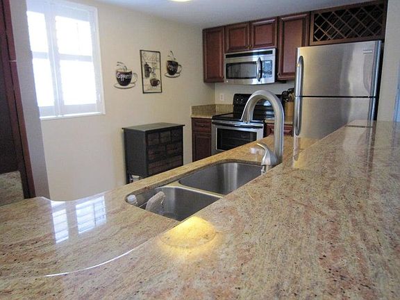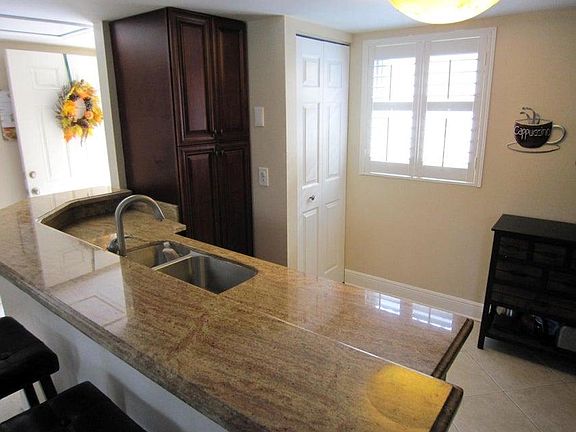 Must see! Remodeled and ideally located across from the pool, fitness center, and sand beach in the gated waterfront community of Bay Reach. This unit includes a rare and coveted garage directly underneath. The kitchen is remodeled with newer cabinetry, custom granite tops, and stainless steel appliances. Matching cabinetry and granite has also been carried into the master bathroom which also features custom tile with border in tub/shower surround. You will also find smooth ceilings with crown molding, upg