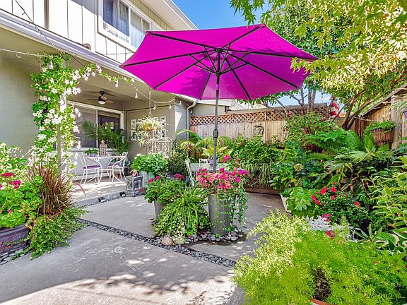 Rare opportunity to make this spacious 3-bedroom, 1.5-bath townhouse your home in a sought-after community. Enter through the garden gate to one of the highlights of this homean extraordinary private garden oasis. Lush landscaping, mature plantings, and a covered patio with ceiling fan and accent lighting create a serene retreat, perfect for morning coffee, dining al fresco, or entertaining under the stars. Inside, the living room includes custom built-ins with a wine rack and striking arched beam, while the dining room offers garden views and connects to the kitchen with newer appliances, painted cabinets, travertine tile floors, and double sink. Upstairs, the generous primary bedroom features a customized closet system and ceiling fan, with laundry just steps away. Additional highlights include open floor plan, hardwood floors, updated lighting, custom paint, newer blinds, and west-facing dual-paned windows. The community offers a pool, clubhouse, EV charging stations, and beautiful landscape grounds. Monthly HOA INCLUDES property tax, PG&E, garbage, water, exterior maintenance, select interior maintenance (furnace, water heater, plumbing, electrical), landscaping, and exterior insurance. Embrace carefree living this is San Rafael Manor living at its finest!
