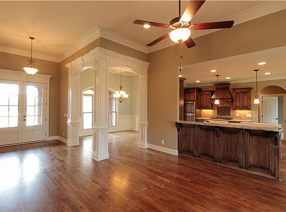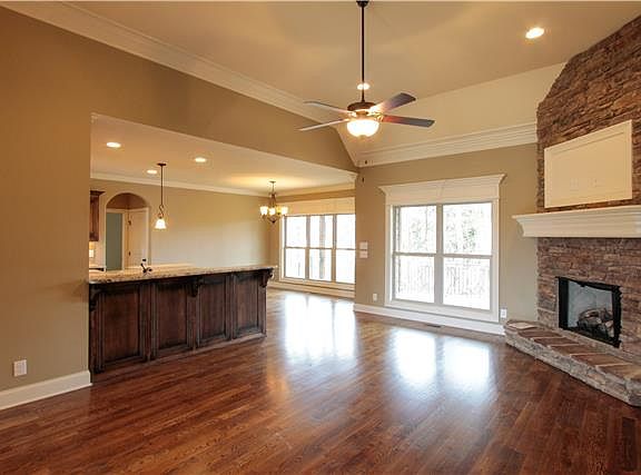 Richmond Plan. Very Open, Lg Kit w/Huge Island, Custom Cabs, Stainless, Extensive custom trim, Hardwood, Master on main, Tile All Baths & Utility, Granite Kit & Master, Covered Porch