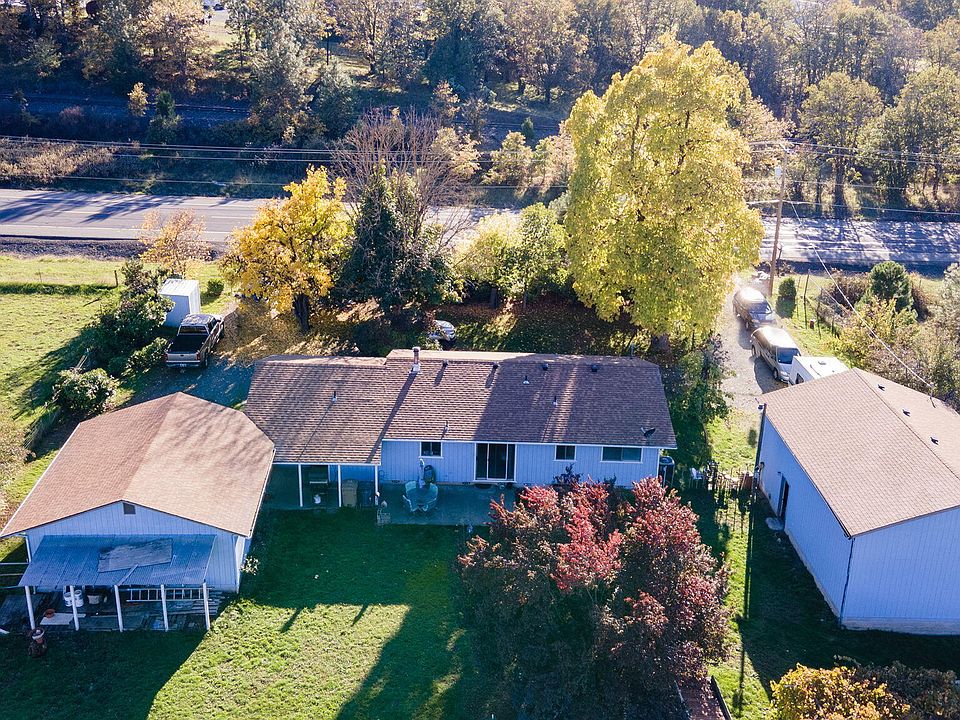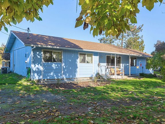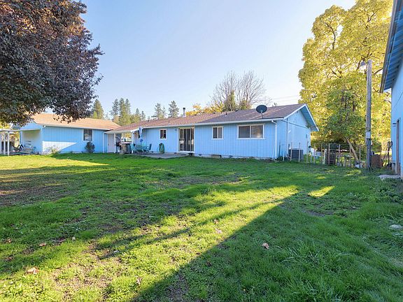 Located near Merlin outside of Grants Pass is the property you have been looking for! Featuring a four bedroom, three bathroom home with dining area, efficient kitchen, and covered parking for all of your toys. The detached two car garages features a covered breezeway to the home and the second detached garage has parking for two more vehicles including a 14 foot door to house your RV. All of this on a .86 acre lot with two wells, newer roof, pellet stove, heat pump, fruit trees-Apple, Pear, Cherry, Grapes, English Walnut, and circle drive. A few updates to carpet and paint will bring this property back to life.