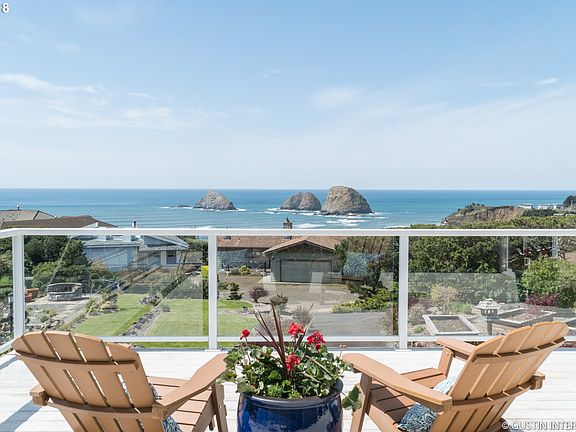 Extraordinary ocean views from this exquisite home sited on an oversized double parcel overlooking the Pacific Ocean. All living on entry level + a beautifully finished daylight basement. Finest quality throughout. Entry level offers airy open floor plan with vaulted ceilings, wall of windows, gorgeous kitchen, stone fireplace, gracious master ensuite and fantastic ocean facing deck. Family room 4th bedroom, bath and storage room below.