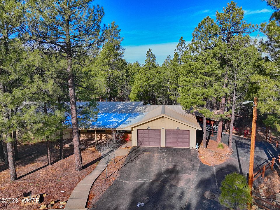 Enjoy PRIVACY & fantastic VIEWS of tall pines from the large back deck. This outdoor space is seriously hard to beat! The home sits on a large lot in the back of the Fairway Park subdivision w/ open space behind it. Without a doubt, one of the best lots in the subdivision, if not the best. The backyard is fully fenced for your furry friends enjoyment & there is a RV carport w/ sewer & electric hook up. The oversized garage has a half bath & shop/storage/office area. The home has a metal roof & is in great condition. It is in move in ready though someone may choose to do some upgrading, which was taken into consideration when pricing. There are 2 living areas, eating area off kitchen, dining area & gas fireplace. This home on this great lot is waiting for your personal touches!