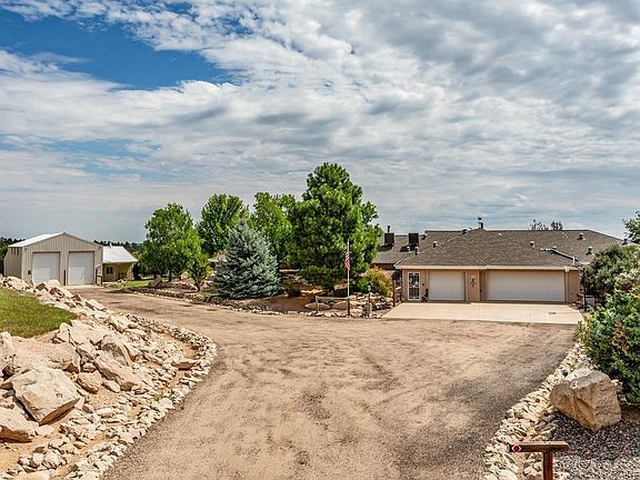 Custom Ranch horse property on 4.5 acres. Private enclave of 3 homes w/open space views, backs to Mitchell Creek Canyon. Quiet country living, but close-in location just minutes to downtown Castle Rock. Multi-generational, in-law, or guest suite options w/2 master suites & private living. Open floor plan features stacked stone accents, spacious great & dining rooms & kitchen w/3 sided fireplace. Fabulous custom kitchen w/granite countertops, SS appliances, breakfast bar & center island. Relaxing private master suite & bath w/steam shower & jetted tub. Separate guest section of home w/2nd kitchen & great room too. 4 season sun room opens to brick patio & pergola, large yard w/pond & deck. Oversized 3 car garage. Horse facilities w/custom 2450 sqft barn, 2 stalls, paddocks & work shop/tack room. 12`x36` loafing shed & arena. Lots of room for RV, boat, cars & toys. Energy efficient w/insulated concrete & elevational berm design, owned solar PV field with low utilities and on city water.