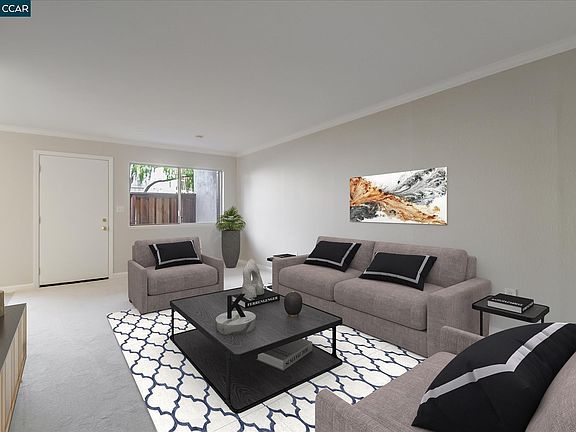 Lovely, comfortable ground level condo! No stairs to entry. Nice size kitchen with new appliances. Filled with natural light, provides a delightful atmosphere in every room. Just painted and brand new flooring throughout. Private fenced in patio with planter areas around the edge. Master bedroom has an ample size walk-in closet. Conveniently located just minutes to downtown Concord Walnut Creek and Pleasant Hill, not to mention just a skip away from many shopping centers and public transportation including BART and bus lines. Amenities include a pool, BBQ area, picnic area and designated covered carport near the unit. HOA includes water and trash removal. No rental restrictions.