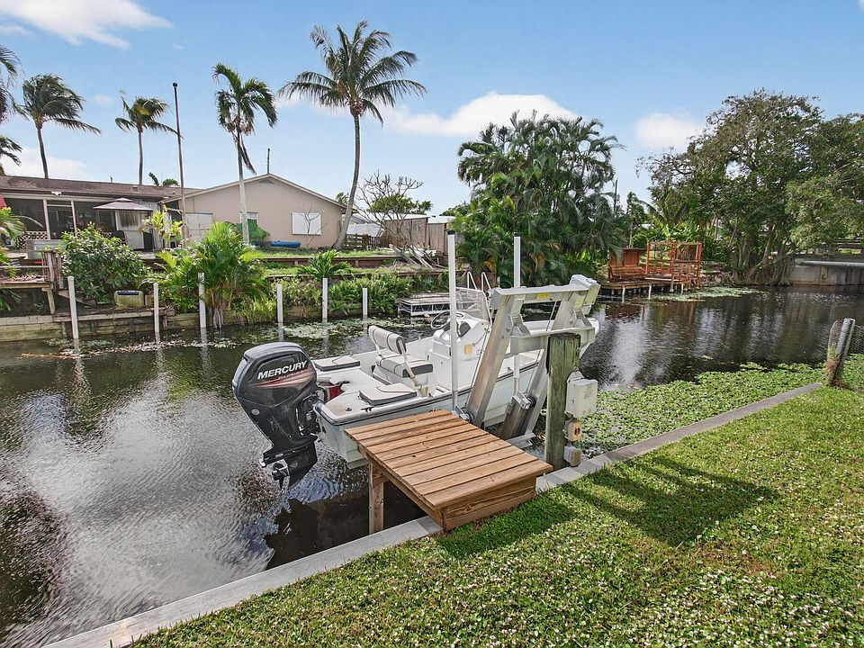 Quintessential Waterfront Living - No HOA! This charming 3-bedroom, 2-bath single-family waterfront home offers a private boat dock/lift with access to Lake Osborne and Lake Ida, providing miles of boating, fishing, and water fun. No HOA, close to everything, and just 3 minutes to I-95, with restaurants and shopping nearby. The home features a split floor plan with a living room, dining room, and family room--perfect for comfortable daily living and entertaining. The backyard is the true highlight, showcasing a gazebo, grassy yard, canal frontage, and private dock. A new retractable screen connects the family/dining room to the outdoors, creating the ultimate Florida lifestyle experience.Recent upgrades include:Roof (2020) Hurricane-impact windows and doors, including garage door " A/C and electrical panel (approx. 4-5 years old)