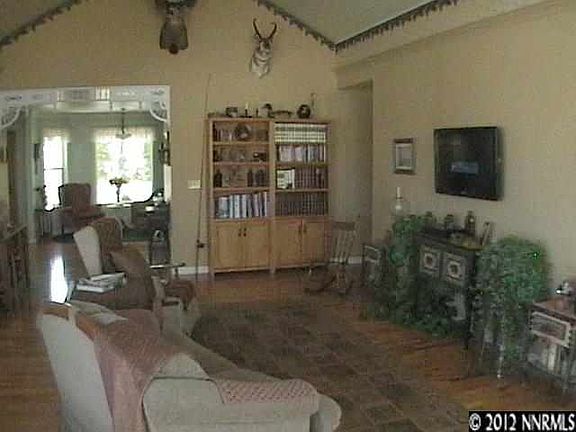 Where the deer and the antelope play ... is here. This country home is located on 5.12 acres backing to BLM with views and privacy galore. From the covered porch you enter on to hardwood floors that open to a family room with Sierra Mt views and plenty of natural light. The homey kitchen features rustic cherry cabinets, pantry, tile counters, in-kitchen eating area as well as separate dining room. And for entertaining, there is a deck that is the width of the house and overlooks the valley to the Sierras