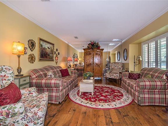 One of a kind. Beautifully updated home with 5" Hickory Distressed Wood Floors, Travertine Tile and 7" Baseboards. Open floor plan includes updated kitchen, stainless steel appliances, Silestone Counters, family room with vaulted ceiling, wood burning fireplace, double French Doors leading to oversized screened patio overlooking pool, landscaped back yard with gazebo. Separate formal dining and living room with custom plantation shutters. 4th bedroom converted to office but can easily be converted back to bedroom with closet. This home boast the most elaborate 13x05 foot laundry room with overhead glass paned cabinets, stone countertop over sink, washer, dryer and storage cabinets. Standing attic, wired for security system, electrical outlet for generator.