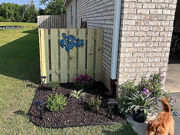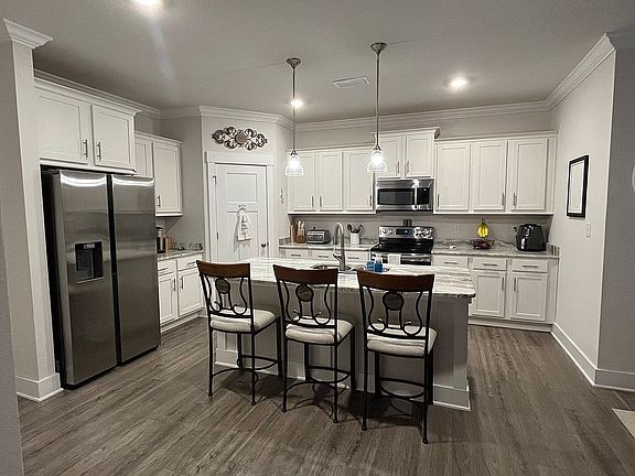 Welcome Home to Quail Landing! Beautiful, 4/2 open floor plan with 1815 spacious sq ft of living, with outside screened in patio (300 sf) , overlooking pond. Great location, only minutes from Alabama's beautiful sugar white sand beaches, OWA amusement park, Foley shopping and downtown Foley Park. Features include: 9' ceilings throughout, tray ceilings finished with crown molding and ceiling fans in the Great Room and Master Bedroom. Granite counters (3cm) in kitchen and baths. Kitchen features a large island with counter height breakfast bar & pendant lights, stainless steel appliances, and beautiful painted cabinets. Master bath has a garden tub, separate shower, double vanity and a large walk-in closet with access to the laundry room for owner's convenience. Also has covered back porches and a 2-Car garage. Quail Landing community features low maintenance, four-side brick homes with modern amenities, that are Certified Gold Fortified, with Craftsman style trim package inside and out, carriage style garage door with opener, and decorative plant package with full sod (where cleared). This home has a fenced in 6' privacy fence (well built with 6" posts) the back view of pond overlooking 4' high fence, great for pets and has lots of privacy . The kitchen appliances are included and are all 2021 Samsung Refr, microwave, and dishwasher. The front loading washer/dryer are included and are 2021 LG brand. Each bedroom boasts of spacious closets, plenty of storage throughout with a pull-down heavy duty aluminum stairs to access attic space above garage. Contact owners to schedule an appointment to view this beautiful home by calling (256) 465-1256