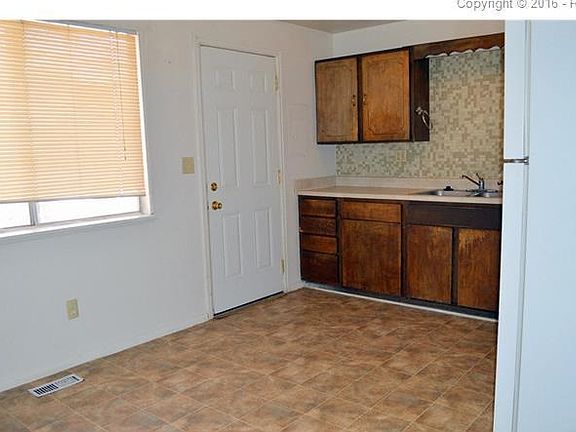 Everything on one level! Full size washer and dryer hook-ups. Kitchen includes - stove, oven, disposal, and refrigerator. School district 2. Nice established neighborhood. Walking distance to schools and major shopping area and restaurants. Garage is converted into living space.
