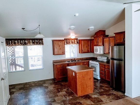 Super cute 2014 Cavco in Show Low Heights! Landscaped, tall pine trees for shade. 2 sheds including Tuff Shed on a slab. Garden, flowers and grass too! Split plan with great room off kitchen with island, double pantry, upgraded cabinets, tile backsplash and gas range. Exec height cabinets in master bath and walk-in closet. Home on concrete slab and deco cinderblock stem wall. Carpet to be cleaned prior to close of escrow. Won't last, hurry!
