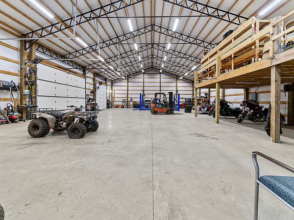 Custom Shop 5,000 sf under one roof, on 1.9 Acres in a Highly Sought After Area. Shop Features a 400 Amp Service, (2) 12x12 Roll Up Doors, (1) 12x18 Roll Up Door, Multiple Mounted Air Hoses Reels with Air Compressor housed in separate exterior room for noise reduction, Hydraulic Car Lift, Loft Storage with Custom Elevator for easy transport of materials to the loft area, Multiple Mounted Fans for Air Circulation, Paved Driveway, Large Paved Parking Area, and RV Hookup.