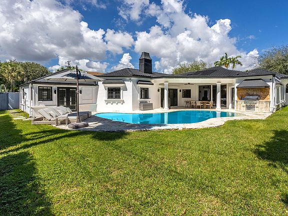 This stunning 5-bed / 5-bath home offers luxury living with no HOA and a split floor plan, with each bedroom featuring its own en-suite bath! Meticulously renovated to include new impact windows, hurricane-rated front door and impact 2 car garage with EV charging. Featuring a custom gourmet kitchen complete with a Miele 8-burner gas stove, Sub-Zero appliances, farm sink and island. High ceilings, crown molding and custom lighting fill the space with elegance and natural light. The backyard oasis boasts a large coral patio with sparkling pool and grill area + a private gate to access Pine Breeze Park! Located in the highly sought-after Palm Beach Farms neighborhood with A-rated schools, this home is minutes from the beach, Mizner Park, shops and restaurants!