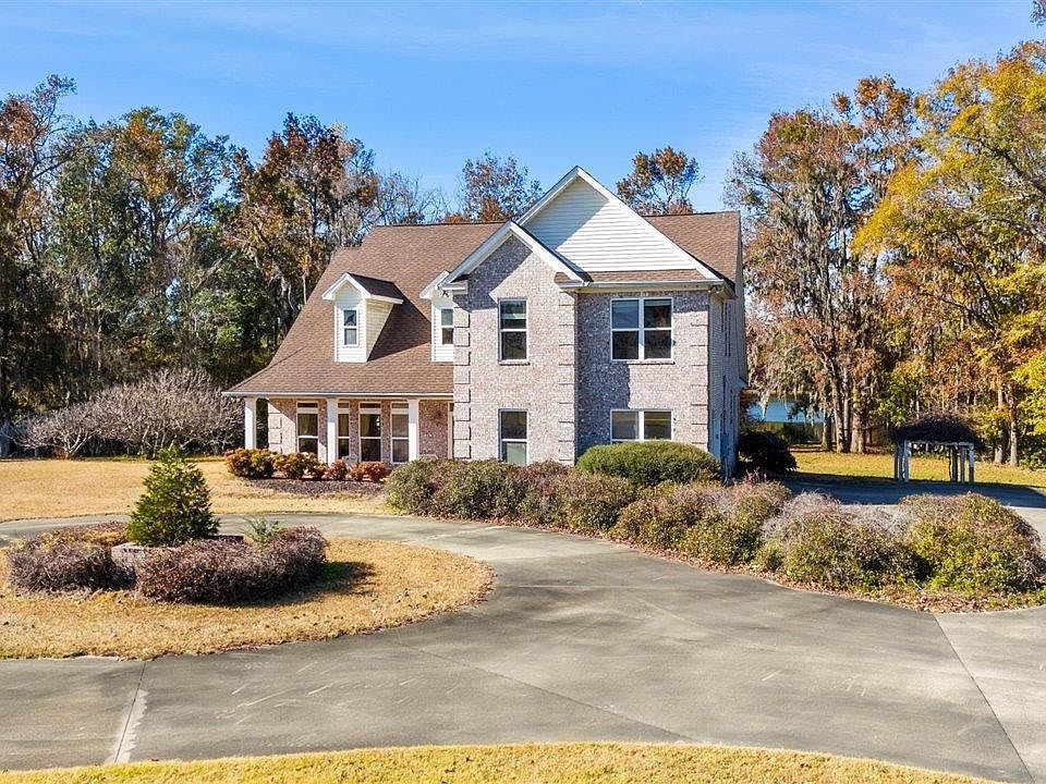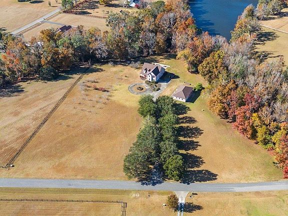 All-brick custom home on over 6 1/2 acres of meticulously landscaped property that fronts a beautiful pond. As you enter the property, you are greeted by the oak lined driveway and a multitude of fruit trees. Interior features include wood flooring throughout all the main living areas, two fireplaces, an open kitchen with custom cabinetry and stainless appliances. There is a large dining room and an owners retreat on the main living level, as well as a den off the breakfast nook and a large living area. Upstairs there are three large bedrooms and a large bonus room. Outside, you’ll appreciate the screen porch with a fireplace and that the home is situated perfectly to soak in the sweeping views. The acreage provides plenty of space to house a detached double carport with a separate workshop that could be converted into a guest apartment. The home is priced very aggressively due to the work that will need to be done on behalf of the new buyer. Such items will include a roof, and replacing some fogged windows. This gated community rarely sees properties go on the market for sale and at this price this one will go very quickly.