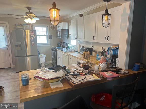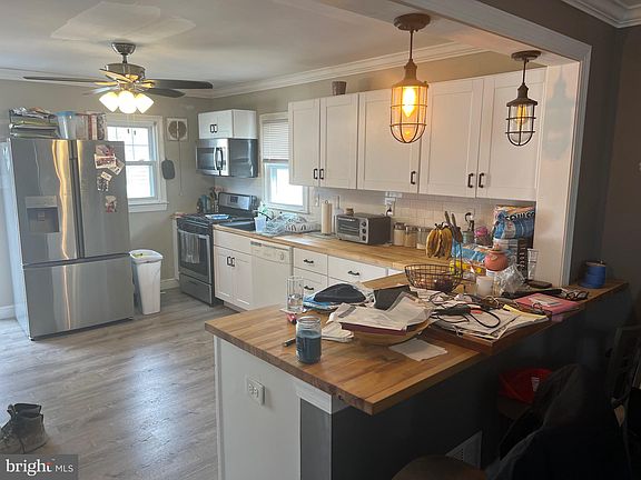ATTENTION HANDYMAN OR INVESTORS!!! We are offering a 3 BR/1.5 BA Cape Cod home that has some upgrades but will require your finishing touches. Your lower level shows luxury vinyl plank flooring throughout. Your KIT shows some stainless steel appliances, with white cabinetry (crowned with butcher block countertop), a white subway tile backsplash, crown molding and breakfast bar, framed with wood and accented with two pedestal lights overhead. The Primary Bedroom is located on the main floor for privacy and is convenient to the half bath. All BRs and KIT feature lighted ceiling fans for your year round comfort. Follow the staircase to your upper level housing two additional bedrooms with carpeted flooring. The full BA is located upstairs and hosts the tub/shower combination, with luxury vinyl flooring and cabinet sink with brushed nickel fixtures. We offer a full (unfinished) BAS for storage and the laundry facility with washer/dryer and accessible laundry tub. We are nestled on a nice lot that is almost fully fenced (just need a side fence) and shows a backyard shed for added storage. This home is just doors away from a great public basketball facility off of Big Timber Creek. We are conveniently located to area shopping, restaurants, and the Walt Whitman Bridge and Route 295 for ease of commute. This home has a newer HW and newer AC outside. With a bit of attention to the details you will be living large ... put us on your viewing list to see what we have to offer YOU!!