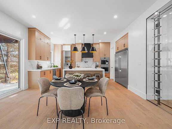 Welcome to an extraordinary expression of modern luxury, where architectural elegance & functional design merge seamlessly. This bespoke Cailor Homes creation has been crafted w/ impeccable detail & high-end finishes throughout, Situated on a one of a kind secluded tree lined lot. Step into the grand foyer, where soaring ceilings & expansive windows bathe the space in natural light. A breathtaking floating staircase w/ sleek glass railings serves as a striking architectural centerpiece. Designed for both productivity & style, the home office is enclosed w/ frameless glass doors, creating a bright, sophisticated workspace. The open-concept kitchen & dining area is an entertainers dream. Wrapped in custom white oak cabinetry & quartz countertops, the chefs kitchen features a hidden butlers pantry for seamless storage & prep. Adjacent, the mudroom/laundry room offers convenient garage access. While dining, admire the frameless glass wine display, a showstopping focal point. Pour a glass & unwind in the living area, where a quartz fireplace & media wall set the tone for cozy, refined evenings. Ascending the sculptural floating staircase, the upper level unveils four spacious bedrooms, each a private retreat w/ a spa-inspired ensuite, heated tile flooring & walk-in closets. The primary suite is a true sanctuary, featuring a private balcony, and serene ensuite w/ a dual-control steam shower & designer soaker tub. The fully finished lower level extends the homes luxury, featuring an airy bedroom, full bath & oversized windows flooding the space w/ light. Step outside to your backyard oasis, complete w/ a custom outdoor kitchen under a sleek covered patio.