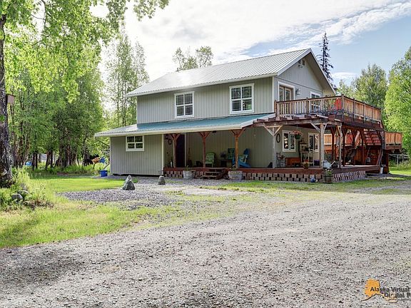 Enjoy nearly 10 acres of private serenity with your animals right off Palmer Fishhook and Trunk. Beautiful farm house with a welcoming front porch, great natural light, open concept living/ kitchen, and a nice deck - this home is cozy inside & out. Several outbuildings including a barn, play house, hay loft, sauna, workshop, chicken coop, dog kennel - the critters will love it as much as you do!