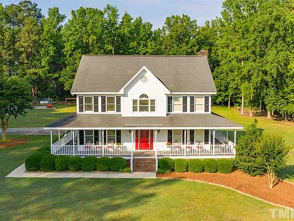 Rare opportunity to enjoy lake living in Wake County! Gorgeous, impeccably maintained home on 4+ acres sits just steps from private Bunn Lake! Features include all hardwood and tile floors, granite countertops in kitchen & baths, light-filled sunroom, family room with fireplace and built-ins, wrap-around porch, extensive landscaping, two car attached garage, plus three car detached garage with workshop. Boat slip lease conveys with home so you can build your own dock on the lake!