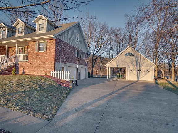 Custom Built DREAM home on the Osage River, LOADED with bonuses! This 3 bedroom/3.5 bath/2 kitchen home features a large, inviting front porch, open concept living with wood floors, oversized bedrooms and walk in closets throughout! The kitchen is a chef's dream with a large eat over bar, loads of counter space & custom cabinetry! Step into the main level Master Suite & escape away from the day, or step out onto one of the multiple decks & take in the GORGEOUS view of the river! Enjoy entertaining your guests under the canopy of trees on the double lot, or on the outdoor covered patio attached to the detached garage, complete with hidden loft loaded with tons of storage space! Step down onto your dock & enjoy a boat ride at your leisure ! This property features more amenities than you can